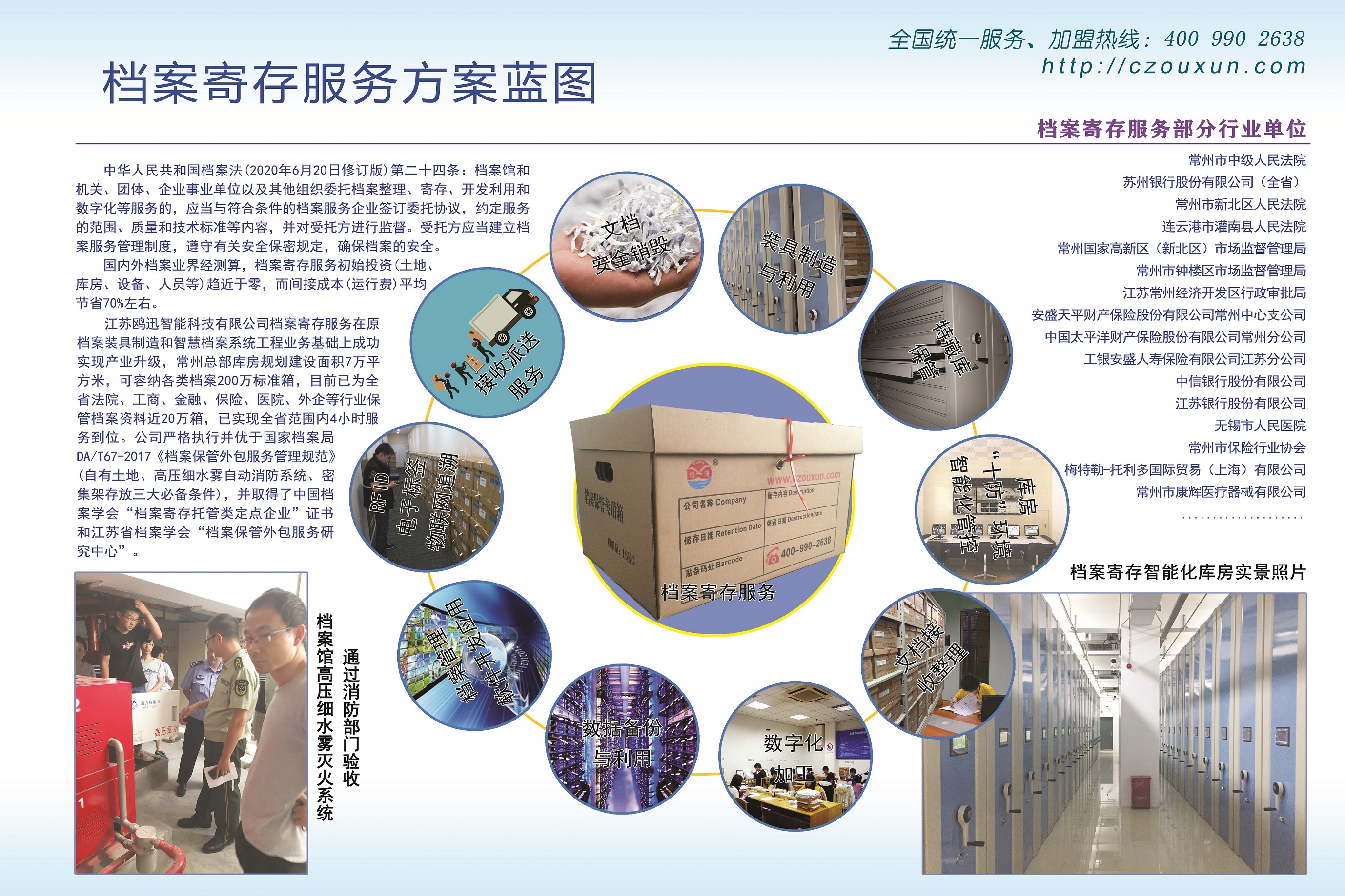 我公司是專(zhuān)業(yè)提供文件檔案管理外包服務(wù)(BPO業(yè)務(wù))的國(guó)家高新技術(shù)企業(yè)。公司秉持立足常州、覆蓋江蘇、輻射全國(guó)、面向世界的發(fā)展理念,以東南大學(xué)為技術(shù)依托,物聯(lián)網(wǎng)、計(jì)算機(jī)為技術(shù)手段